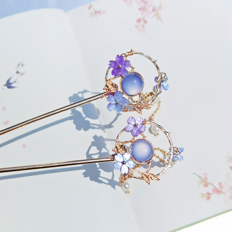 กิ๊บติดผม Hanfu สไตล์โบราณ กิ๊บพู่เรียบง่ายอเนกประสงค์