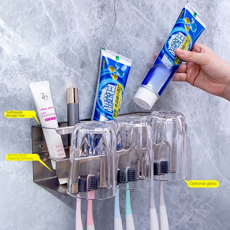 ที่วางแก้วน้ำยาบ้วนปาก ที่เก็บของในห้องน้ำ ชั้นเก็บสแตนเลส ที่วางแปรงสีฟันติดผนัง