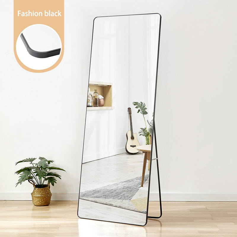 ใหม่อลูมิเนียมอัลลอยด์กระจกยาวกระจกตั้งพื้นกระจกแต่งตัวทรงกลมบ้านกระจกอลูมิเนียมอัลลอยด์