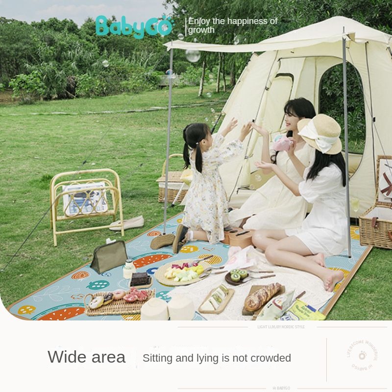 เสื่อกันน้ำและกันความชื้นกลางแจ้งเสื่อตั้งแคมป์สนามหญ้าพับแบบพกพาฉนวนเสื่อปิกนิกสำหรับเด็ก