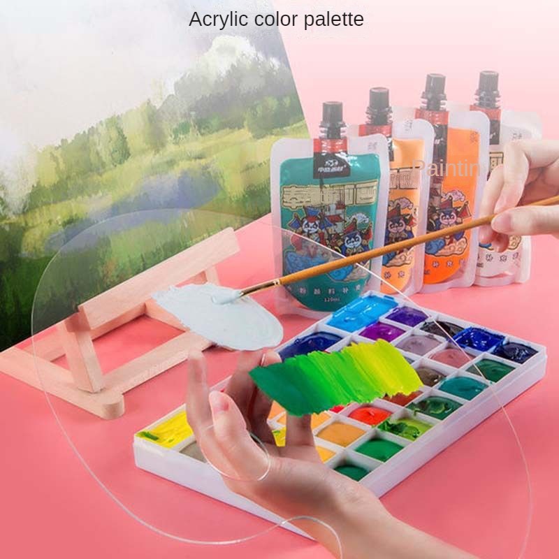 นักเรียนศิลปะจานสีอะคริลิโปร่งใสใช้จานสีน้ำมันจีนแบบดั้งเดิมจานสี่เหลี่ยมวงรี