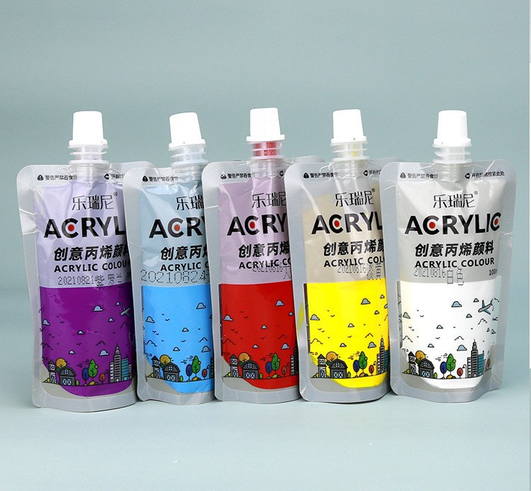 Leruini 100m อะคริลิคเติมภาพวาดแบบพกพา stand-up bag ของเหลวภาพวาด DIY สีอะคริลิคกระเป๋าขายส่ง